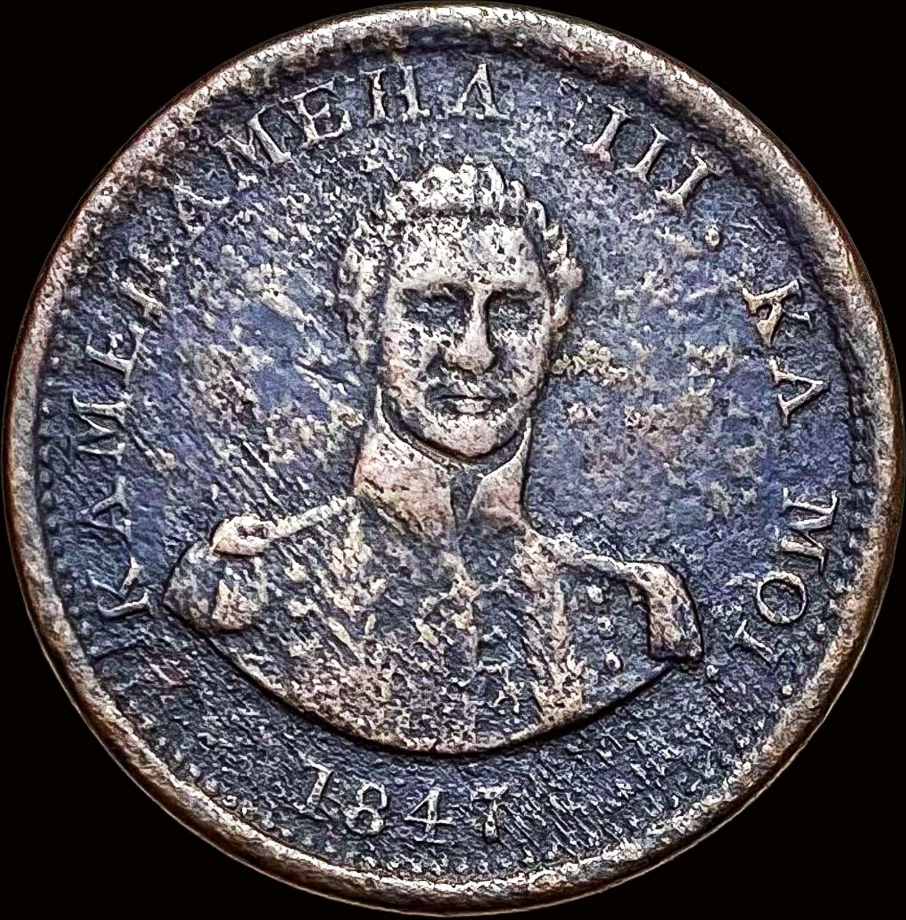 1847 Hawaii Copper Hapa Haneri Token NICELY  CIRCULATED