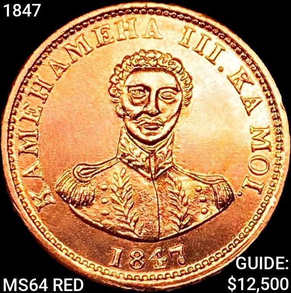 1847 Hawaiian Hapa Haneri One Cent UNCIRCULATED RD