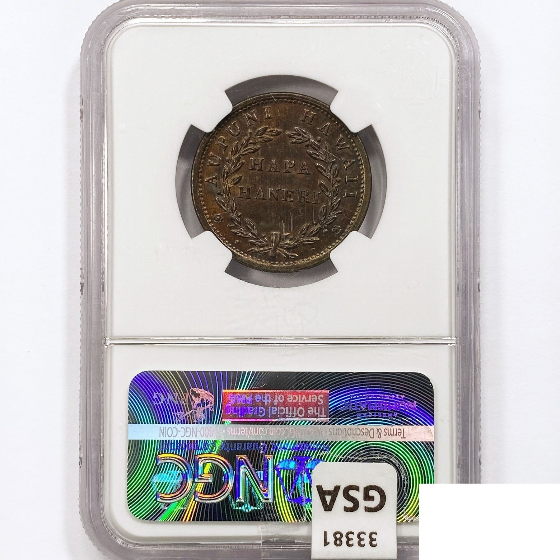 1847 Kingdom of Hawaii Cent NGC MS62 BN