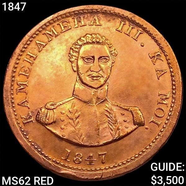 1847 Kingdom of Hawaii Large Cent UNCIRCULATED RD