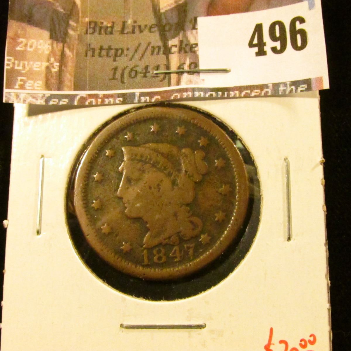 1847 Large Cent, G, value $20