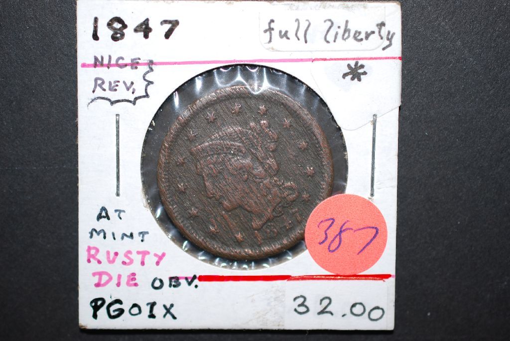 1847 Large One Cent; Full Liberty; Rusty Die @ Mint on Obv.; EST. $40-60
