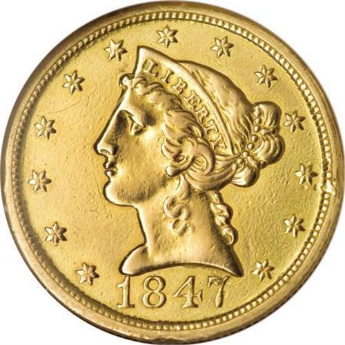 <B>1847-O $5 --Damaged, Polished--ANACS. XF45 Details.</B></I> Per Winter, the 1847-O is the rarest New Orleans Mint half eagle, both overall and in high grades. Only 12,000 pieces were struck, and Winter estimates that only 40 to 50 pieces are known. The present boldly detailed example is bright and glossy from polishing, and has obverse edge marks at 3 and 6 o'clock.<BR><BR><B>Coin Engraver:</B> Christian Gobrecht<BR><BR><b>Shipping:</b> Coins & Currency (<a target="_blank" href="http://www.heritageauctions.com/common/shipping.php">view shipping information</a>)