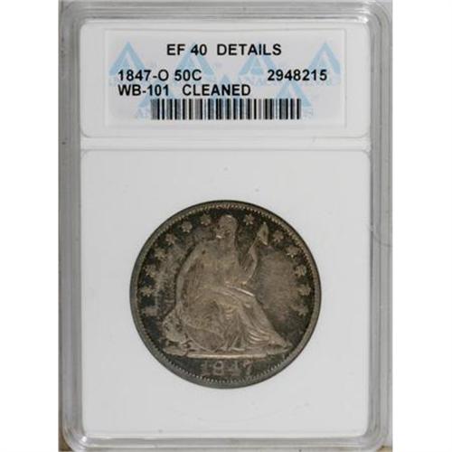 <B>1847-O 50C --Cleaned--ANACS. XF40 Details.</B></I> WB-101. NGC Census: (0/49). PCGS Population (3/37). Mintage: 2,584,000. Numismedia Wsl. Price for NGC/PCGS coin in XF40: $125. (#6259)<BR><BR><b>Shipping:</b> Coins & Currency (<a target="_blank" href="http://www.heritageauctions.com/common/shipping.php">view shipping information</a>)