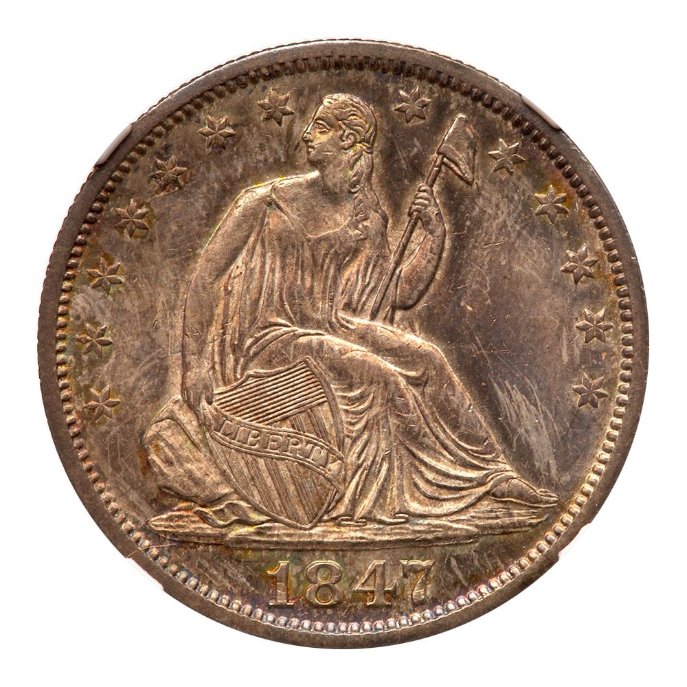 1847-O. NGC graded MS-66. Lovely golden toning on both sides with a bold and complete strike and exceptionally clean surfaces. The toning is a rich blend of russet gold with tinges of orange intermixed. Amazing surface quality for this date, and this coin stands alone as the finest certified between both major grading services.An epic opportunity! Pop 1; the finest example graded at both services. Estimated Value 20,000 - UP