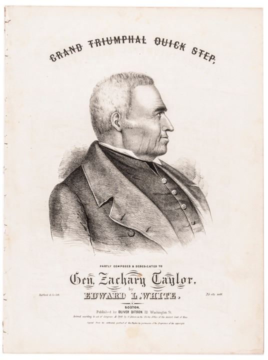 Portrait Bust of “Gen. Zachary Taylor” on 1847 “Grand Triumphal Quick Step” Music Sheet by Edward L White