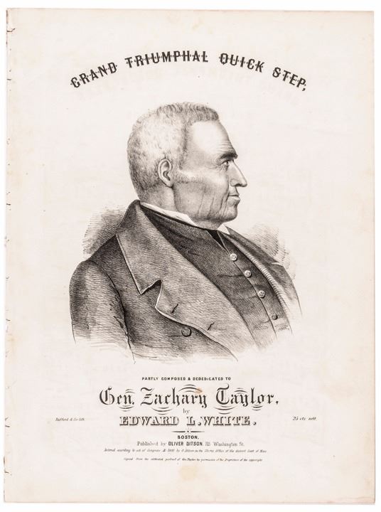 Portrait Bust of “Gen. Zachary Taylor” on 1847 “Grand Triumphal Quick Step” Music Sheet by Edward L White
