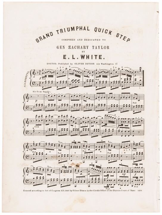 1847-Dated American-Mexican War Period, Printed Music Sheet titled, “Grand Triumphal Quick Step” by Edward L. White, Published by Oliver Ditson, Boston, Choice Very Fine.
