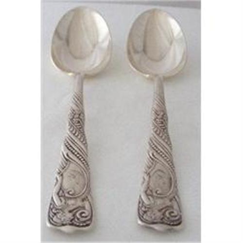 SIREN PATTERN. A PAIR OF SERVING SPOONS. SOLD AS A SET.</em></td>