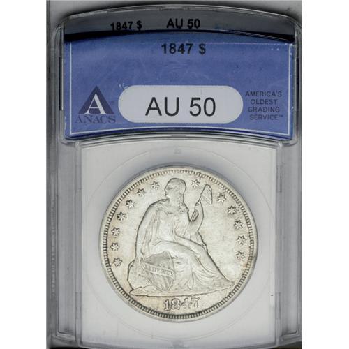 1847 S$1 AU50 ANACS. Light silver surfaces with traces 1847[img border='0' src='http://www.heritagec