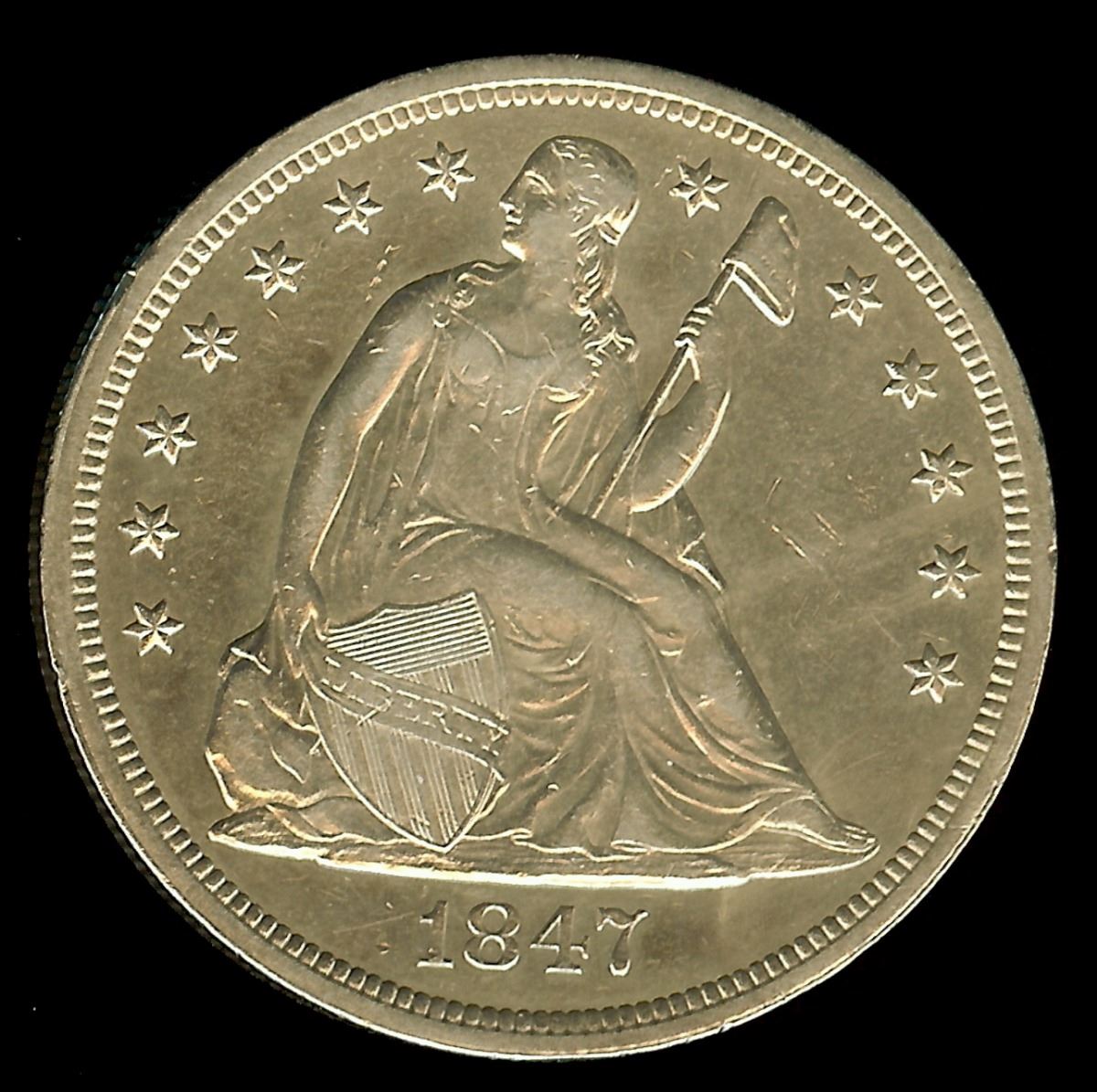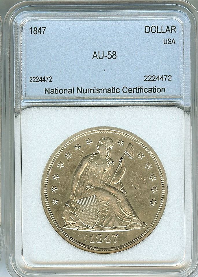 1847 SEATED LIBERTY SILVER DOLLAR NNC AU-58 SCARCE!