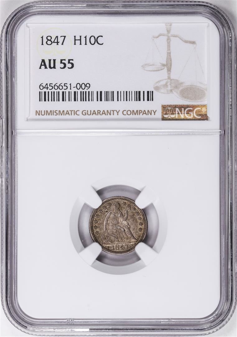 One 1847 Seated Liberty Half Dime Coin NGC AU55. NGC Certified.