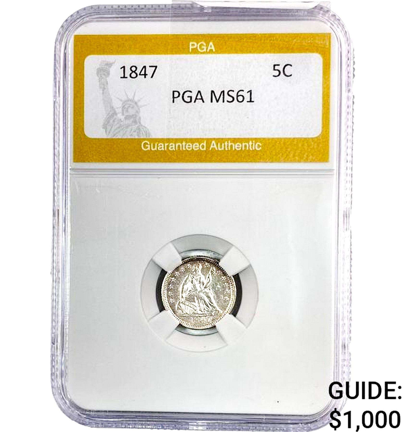 COINS AND CURRENCY LISTED IN GSA’S CATALOG AS GRADED AND ENCAPSULATED BY PCGS, NGC, ANACS, ICG, PCGS CURRENCY, PMG, PCGS BANKNOTE GRADING, CMC OR ANY OTHER THIRD-PARTY GRADING SERVICE ARE LIKEWISE SOLD “AS-IS” EXCEPT AS EXPRESSLY SET FORTH HEREIN. ALL THIRD-PARTY GRADING SERVICE GUARANTEES, INCLUDING AUTHENTICITY, ARE THE SOLE RESPONSIBILITY OF THE THIRD-PARTY GRADING SERVICE AND NOT WARRANTIES OR GUARANTEES OF GSA. BIDDERS SHOULD CONTACT THESE THIRD-PARTY GRADING SERVICES DIRECTLY WITH RESPECT TO ANY CLAIMS OR QUESTIONS THEY MAY HAVE CONCERNING THEIR GUARANTEES AND WARRANTIES. BIDDERS ACKNOWLEDGE AND AGREE THAT AUCTIONEER IS NOT BOUND BY OR LIABLE FOR ANY OPINION OR CERTIFICATION BY ANY THIRD-PARTY GRADING SERVICE. REMOVAL OF A PRODUCT FROM ITS PROTECTIVE CASING OR HOLDER OR ALTERATION OF ANY COIN HOLDER WAIVES ALL RIGHTS CONCERNING THE PRODUCT CONTAINED THEREIN.