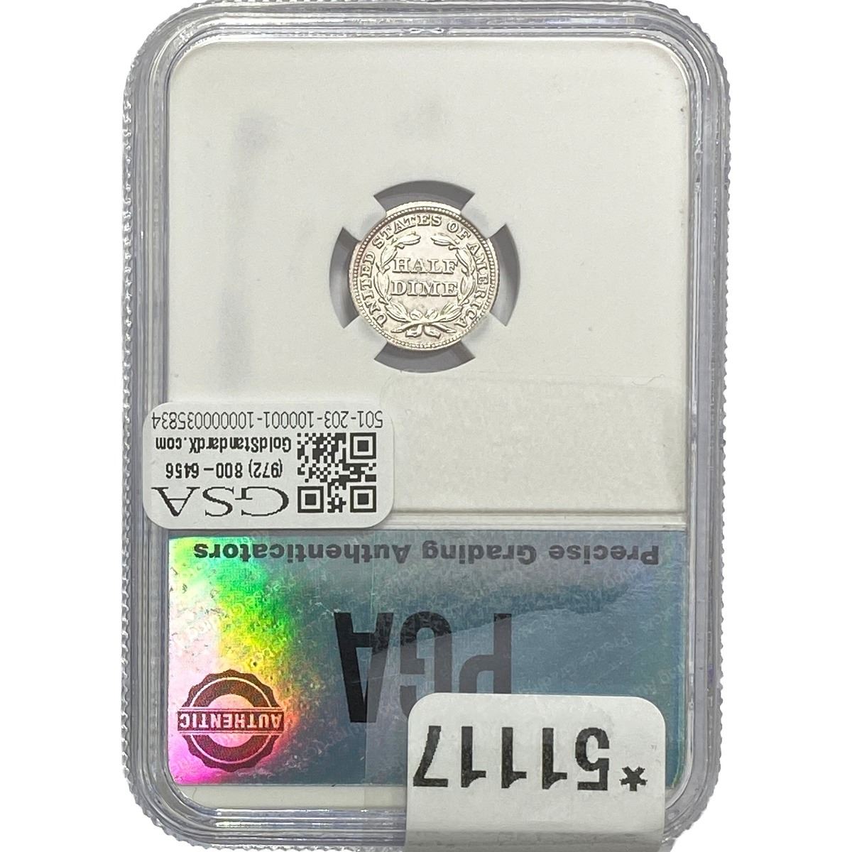 e. Coins sold referencing a third-party grading service are sold “AS IS” without any express or implied warranty, except for a guarantee by GSA that they are genuine. Removal or alteration of the holder, voids all of Bidder’s claims concerning that Product. Certain warranties may be available from the grading services and Bidders are referred to them for further details: Numismatic Guaranty Corporation (NGC), PO Box 4776, Sarasota, FL 34230, www.ngccoin.com/services/writtenguarantee.asp; Professional Coin Grading Services (PCGS), PO Box 9458, Newport Beach, CA 92658, www.pcgs.com/guarantee.html; ANACS, 6555 S. Kenton St., Ste. 303, Englewood, CO 80111; and Independent Coin Grading Co. (ICG), 7901 East Bellview, Ave., Suite 50, Englewood, CO 80111.