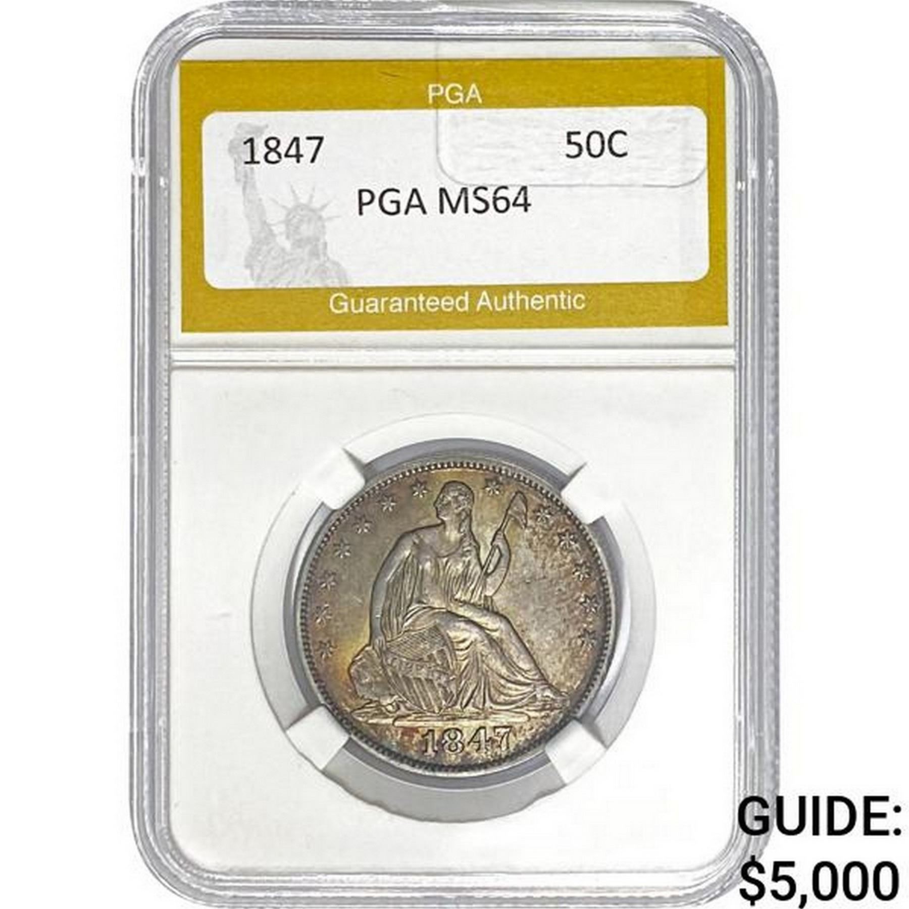 1847 Seated Liberty Half Dollar PGA MS64 MS64
