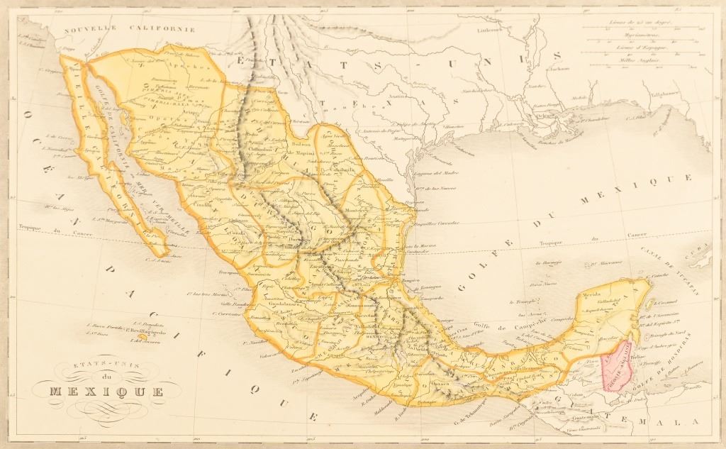 Etats-Unis du Mexique. (United States of Mexico). Malte-Brun. 1847. Paris. Image size ~12 x 8.5”. Shows Texas shortly after it joined the United States (1845), at the start of the Mexican War (1846-1848).