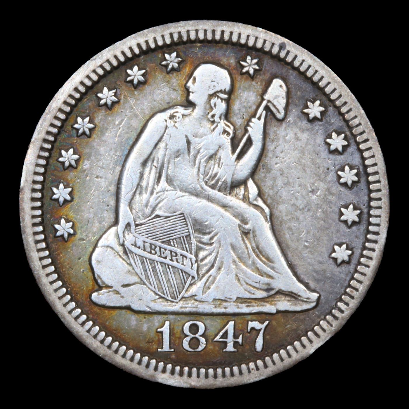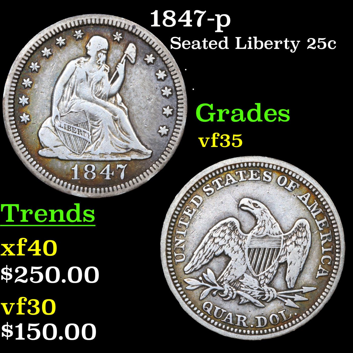 1847-p Seated Liberty Quarter 25c Grades vf++.
