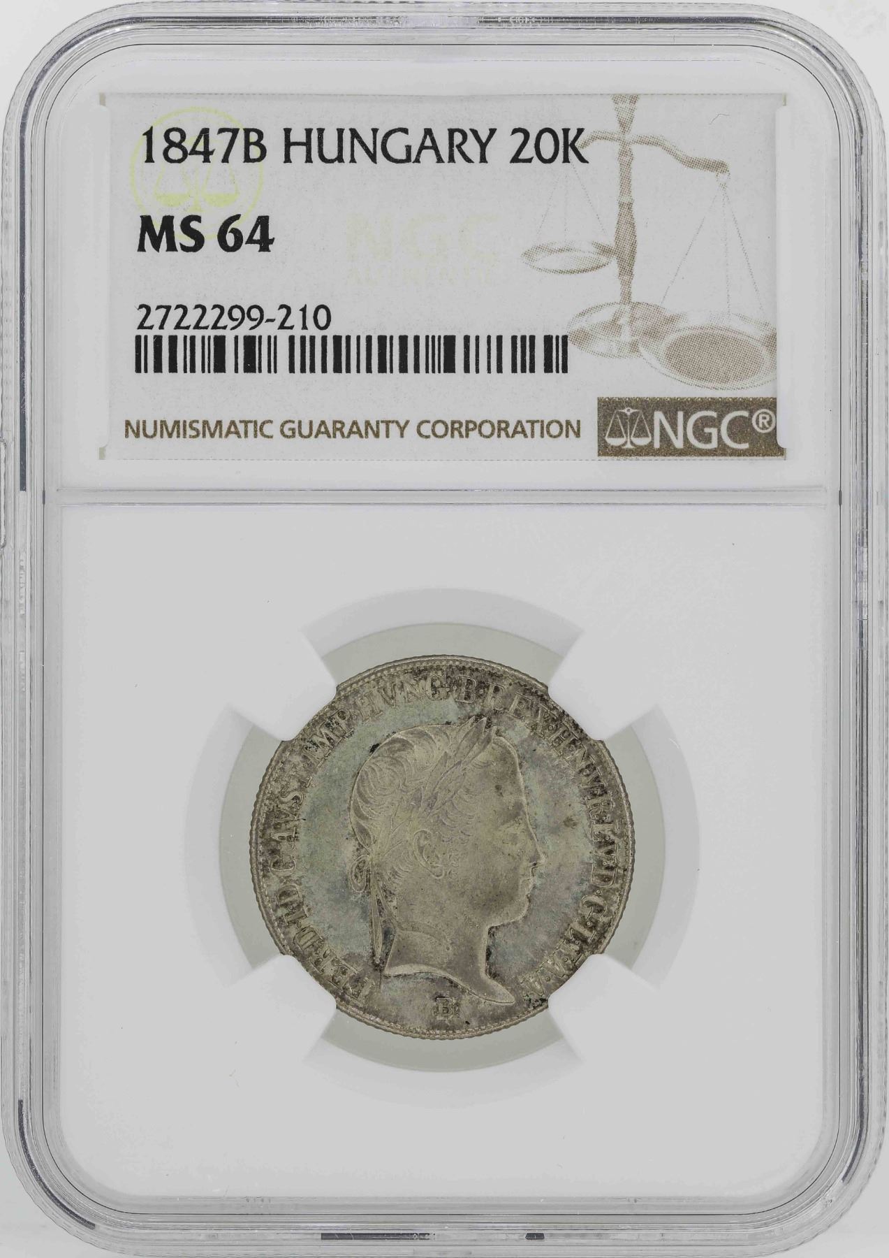 One 1847B Hungary 20 Kreuzer Coin NGC MS64.