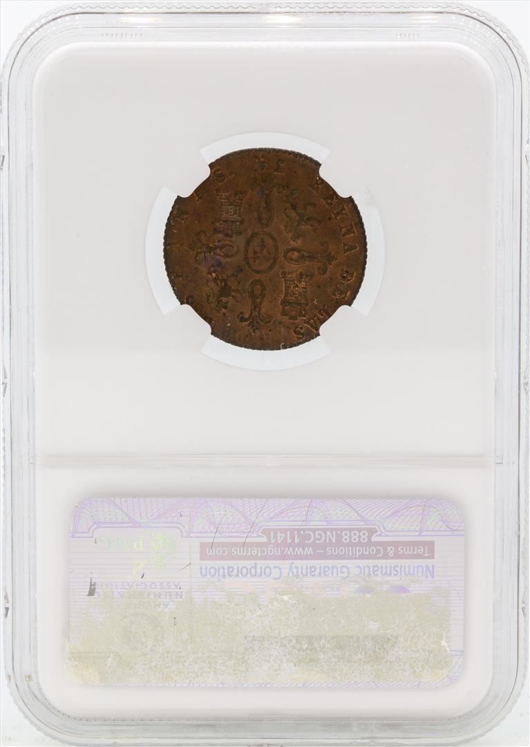 One 1847JA Spain 4 Maravedia Coin NGC MS63 RB. NGC Certified.