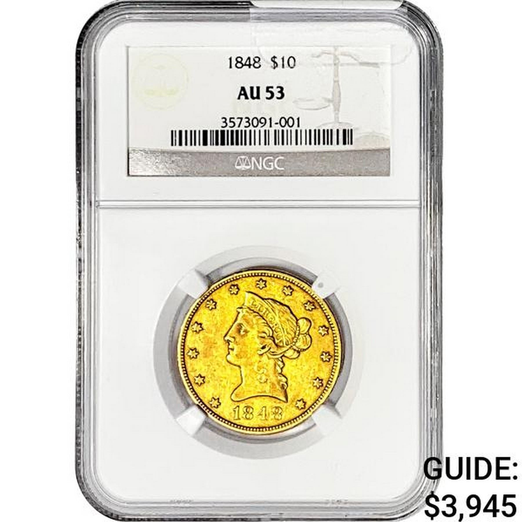 1848 $10 Gold Eagle NGC AU53