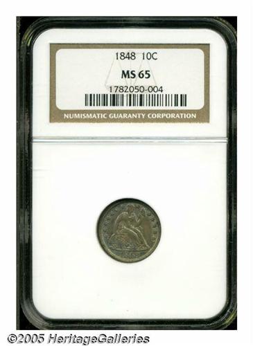 1848 10C MS65 NGC. Well detailed with smooth, sat