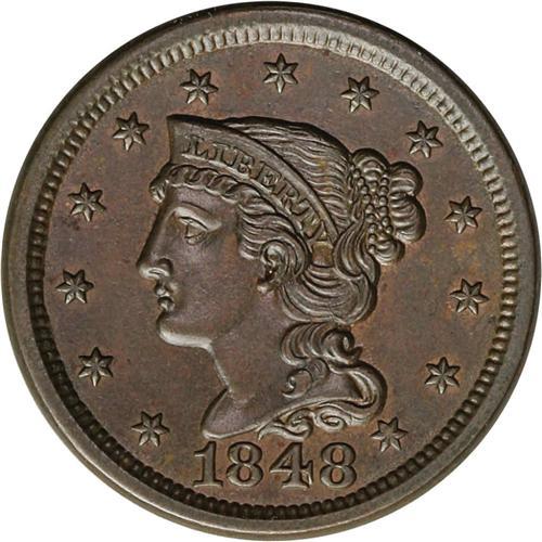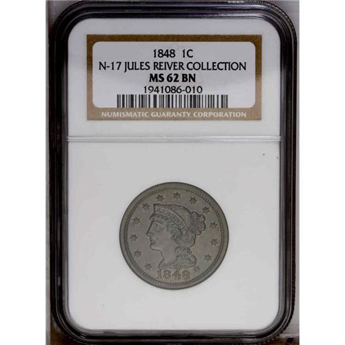 1848 1C MS62 Brown NGC. N-17, R.1. The upright of the 1848[1C] N-17, R.1. MS62 Brown NGC. MS60 EAC.