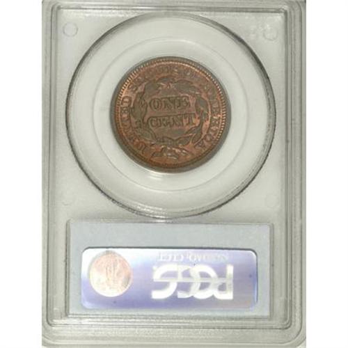 <B>1848 1C MS64 Red and Brown PCGS.</B></I> N-8, R.3. An early die state with reverse die cracks present, yet not fully developed. Both sides have splendid orange mint luster that is slightly faded to pale brown and light blue. EAC 63.<BR><BR><B>Coin Engraver:</B> Christian Gobrecht<BR><BR><b>Shipping:</b> Coins & Currency (<a target="_blank" href="http://www.heritageauctions.com/common/shipping.php">view shipping information</a>)