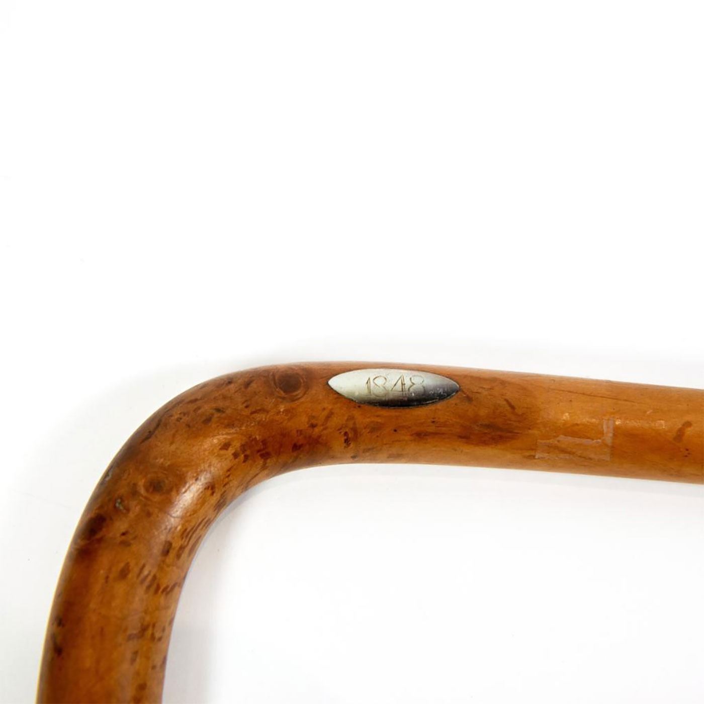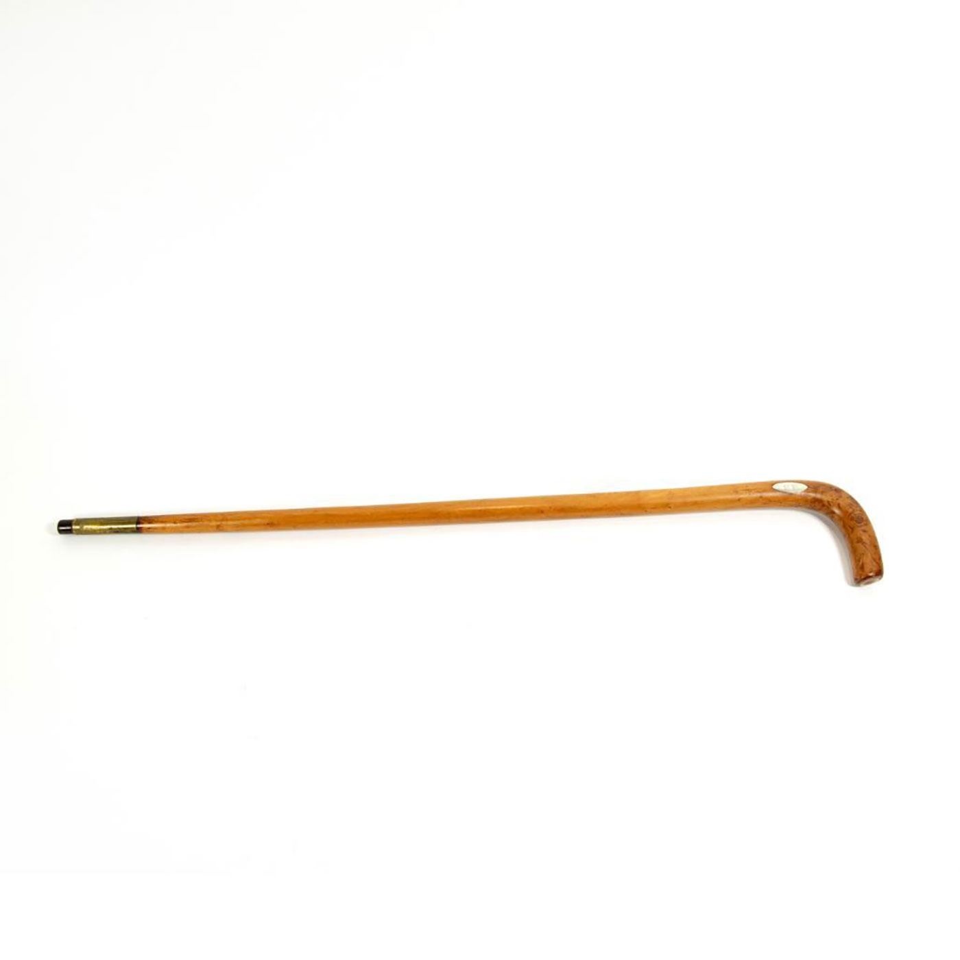 Mother of pearl handled cane/walking stick. 30"L Shaft made of maple wood. 3" brass ferrule. Dated1848. Excellent condition with age related wear. Fashion Canes and Walking Sticks