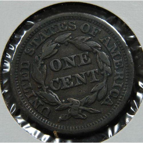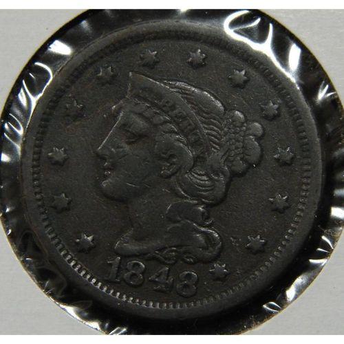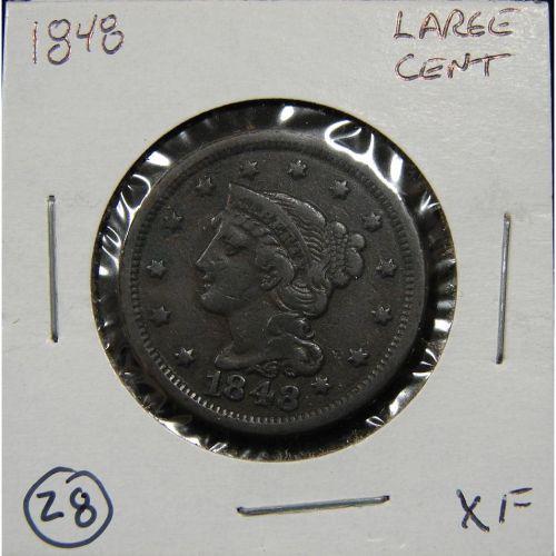 1848 U.S. BRAIDED HAIR LARGE CENT. XF.