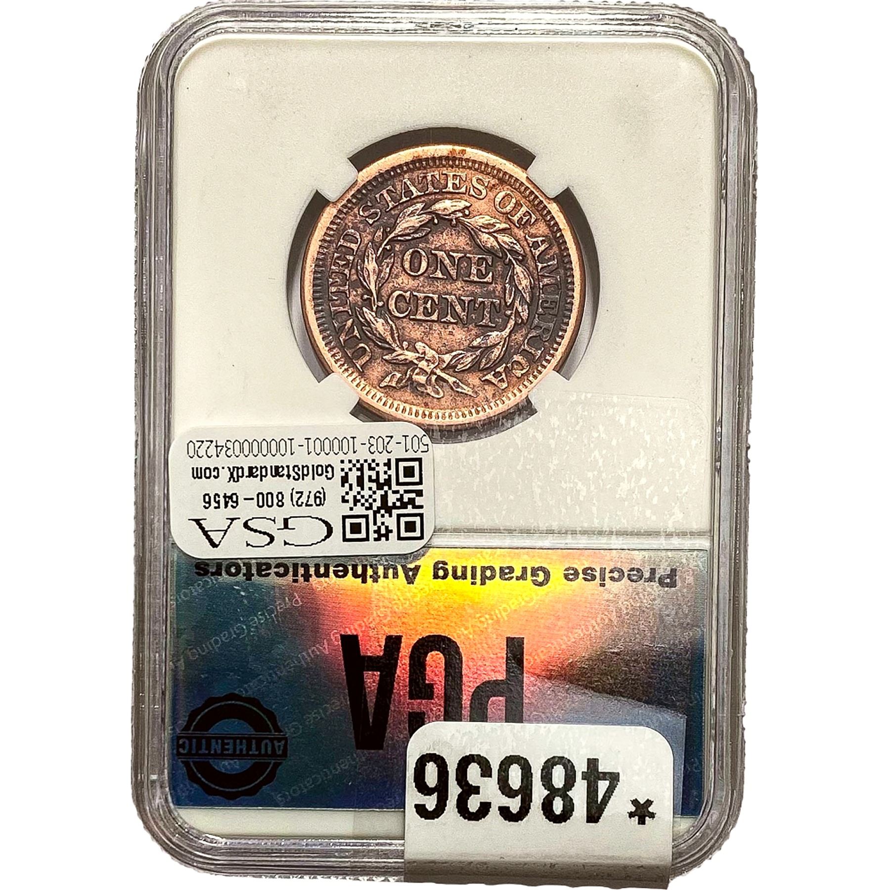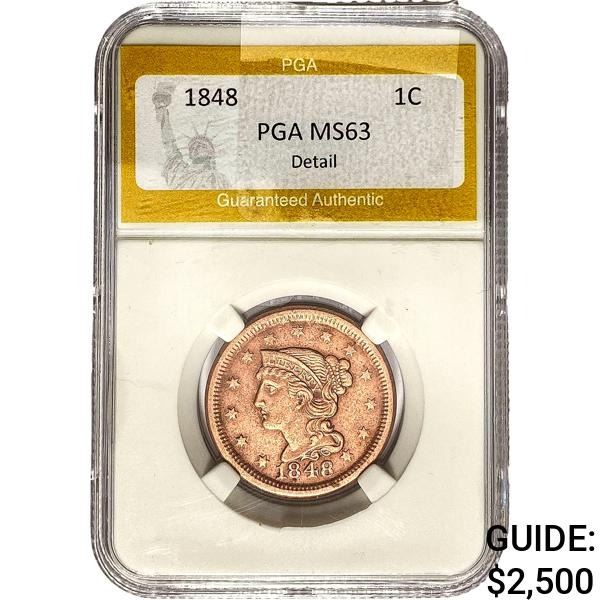 1848 Braided Hair Large Cent PGA MS63