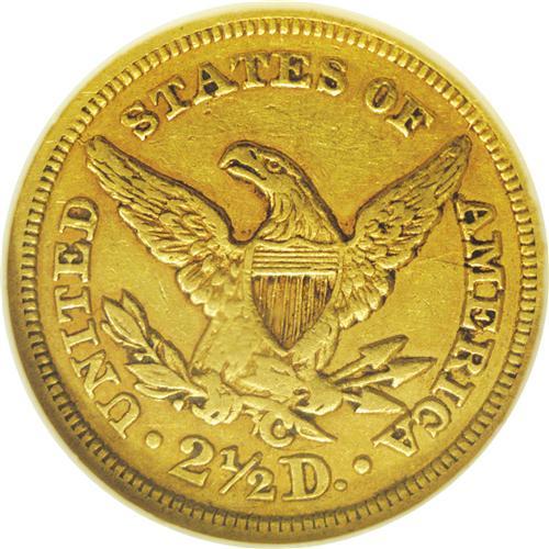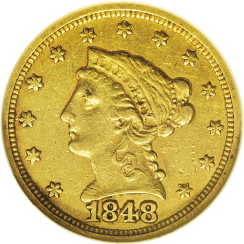 1848-C $2 1/2 AU50 NGC. Variety-9-F, recognized by thi 1848-C[$2 1/2] AU50 NGC.