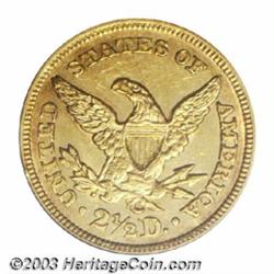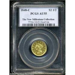 <table><tr><td><TABLE cellSpacing=0 cellPadding=0 width="100%" bgColor=#000000 border=0><TBODY> <TR><TD width="100%"><TABLE cellSpacing=1 cellPadding=3 width="100%" border=0><TBODY><TR><TD width="100%" bgColor=#79735c><FONT face=arial color=#ffffff size=3><B>Description</B> </FONT></TD></TR><TR><TD width="100%" bgColor=#ffffff><FONT face=arial size=2><B>1848-C $2 1/2 AU55 PCGS.</B></I> Winter 9-F. An especially appealing example of this condition and strike rarity, being very well struck in the centers and boasting a vibrant, semi-reflective sheen. Although the '48-C ranks low in terms of overall availability among C-mint Quarter Eagles, one would have to search long and hard to locate a more desirable representative of the issue.<BR><I>From The New Millennium Collection.</B></I> </FONT></TD></TR></TBODY></TABLE></TD></TR></TBODY></TABLE><BR><A name=PricesRealized></A><TABLE cellSpacing=0 cellPadding=0 width="100%" bgColor=#000000 border=0><TBODY><TR><TD width="100%"><TABLE cellSpacing=1 cellPadding=3 width="100%" border=0><TBODY><TR><TD width="100%" bgColor=#79735c><A name=PR><FONT face=arial color=#ffffff size=3><B>Previous Prices from Heritage Auctions</B> </FONT></A></TD></TR><TR><TD bgColor=#f6f6ed><TABLE cellSpacing=0 cellPadding=0 width="100%" border=1><TBODY><TR><TD align=middle width="33%"><B>Date</B></TD><TD align=middle width="33%"><B>Service</B></TD><TD align=middle width="33%"><B>Price</B></TD></TR><TR bgColor=whitesmoke><TD width="33%"><B>11/01/1998</B></TD><TD width="33%">PCGS</TD><TD width="33%">$9,775.00</TD></TR><TR bgColor=whitesmoke><TD width="33%"><B>10/01/1998</B></TD><TD width="33%">PCGS</TD><TD width="33%">$3,905.00</TD></TR></TBODY></TABLE></TD></TR><TR><TD bgColor=#ffffff><FONT face=arial size=1 ?>PLEASE NOTE: All prices realized reflect the final hammer price PLUS the buyer's premium in auctions that charge a buyer's premium. Each item has a notation at the top of the listing indicating whether that lot included a buyer's premium. Example: A item that sells with a final hammer price of $100 and a 20% buyer's premium will display with a price realized of $120. All information listed is intended to be as accurate as possible, but errors are possible. Please use this guide carefully and inform us of any inaccuracies. </FONT></TD></TR></TBODY></TABLE></TD></TR></TBODY></TABLE><BR><TABLE cellSpacing=0 cellPadding=0 width="100%" bgColor=#000000 border=0><TBODY><TR><TD width="100%"><TABLE cellSpacing=1 cellPadding=3 width="100%" border=0><TBODY><TR><TD width="100%" bgColor=#79735c colSpan=6><FONT face=arial color=#ffffff size=3><B>Price Guide*</B> </FONT></TD></TR><TR bgColor=#f6f6ed><TD align=middle><B>Grade</B> </TD><TD align=middle><B>Coin World<BR>(Trends)</B> </TD><TD align=middle><B>Numismedia<BR>Retail</B> </TD><TD align=middle><B>Numismedia<BR>Wholesale</B> </TD><TD align=middle><B>Coin<BR>Universe</B> </TD><TD align=middle><B>Heritage<BR>Value Index</B> </TD></TR><TR bgColor=#ffffff><TD align=middle>53</TD><TD align=right>---</TD><TD align=right>---</TD><TD align=right>$4,125.00</TD><TD align=right>---</TD><TD align=right>$3,514.67</TD></TR><TR style="FONT-WEIGHT: bold" bgColor=#cccfdd><TD align=middle>55</TD><TD align=right>$6,000.00</TD><TD align=right>---</TD><TD align=right>$4,525.00</TD><TD align=right>$4,400.00</TD><TD align=right>$4,406.67</TD></TR><TR bgColor=#ffffff><TD align=middle>58</TD><TD align=right>$9,000.00</TD><TD align=right>---</TD><TD align=right>$5,475.00</TD><TD align=right>---</TD><TD align=right>$6,884.50</TD></TR><TR bgColor=#ffffff><TD colSpan=6><FONT size=1>*All information listed is intended to be as accurate as possible, but errors are possible. No item may be returned or refused based on this information which is provided as a service to our customers. You should contact each pricing source directly to determine the accuracy of this information. </FONT></TD></TR></TBODY></TABLE></TD></TR></TBODY></TABLE><BR><TABLE cellSpacing=0 cellPadding=0 width="100%" bgColor=#000000 border=0><TBODY><TR><TD width="100%"><TABLE cellSpacing=1 cellPadding=3 width="100%" border=0><TBODY><TR><TD width="100%" bgColor=#79735c><FONT face=arial color=#ffffff size=3><B>Population Guide</B> </FONT></TD></TR><TR bgColor=#ffffff><TD align=middle><!-- Begin Output of Population Grid--><TABLE cellSpacing=0 cellPadding=0 width="100%" border=0><TBODY><TR><TD vAlign=center><TABLE cellSpacing=0 width="100%" border=1 cellsadding="3"><TBODY><TR><TD vAlign=center><TABLE cellSpacing=0 cellPadding=3 width="100%" border=1><TBODY><TR><TD vAlign=center align=middle bgColor=#f0f1e8 colSpan=2 <CENTER><FONT face=Arial size=2><B>PCGS Pop </B></FONT><CENTER></CENTER></TD><TD vAlign=center align=middle bgColor=#f0f1e8 colSpan=2><CENTER><FONT face=Arial size=2><B>NGC Pop</B></CENTER></FONT></TD></TR><TR><TD vAlign=center><FONT face=Arial size=2>(55)</FONT> </TD><TD vAlign=center align=right><FONT face=Arial size=2>4</FONT> </TD><TD vAlign=center><FONT face=Arial size=2>(55)</FONT> </TD><TD vAlign=center align=right><FONT face=Arial size=2>9</FONT> </TD></TR><TR><TD vAlign=center><FONT face=Arial size=2>(>55)</FONT> </TD><TD vAlign=center align=right><FONT face=Arial size=2>8</FONT> </TD><TD vAlign=center><FONT face=Arial size=2>(>55)</FONT> </TD><TD vAlign=center align=right><FONT face=Arial size=2>33</FONT> </TD></TR></TBODY></TABLE></TD></TR></TBODY></TABLE></TD></TR></TBODY></TABLE><!-- End Output of Population Grid--></TD></TR></TBODY></TABLE></TD></TR></TBODY></TABLE><BR><TABLE cellSpacing=0 cellPadding=0 width="100%" bgColor=#000000 border=0><TBODY><TR> Important notice: Heritage usually auctions material at the rate of 200-250 lots per hour. On some occasions eBay Live bid software or the Internet may not be able to keep up with the pace of the auction. We recommend placing a realistic absentee bid now as insurance to avoid disappointment. Occasionally the auctioneer may eliminate or reject an eBay Live bid, and the auctioneer may also reopen a lot after the close of t