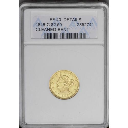 1848-C $2 1/2 --Cleaned, Bent--ANACS. XF40 Details. Var 1848-C[$2 1/2]--Cleaned, Bent--ANACS. XF40 D