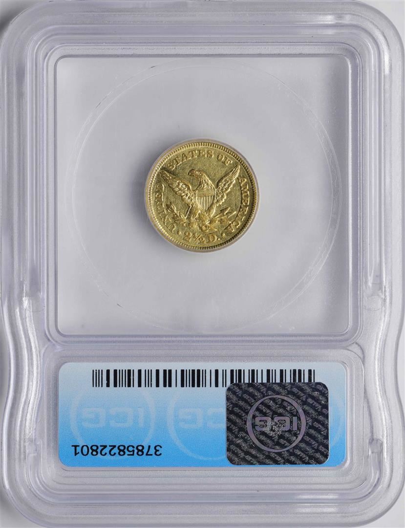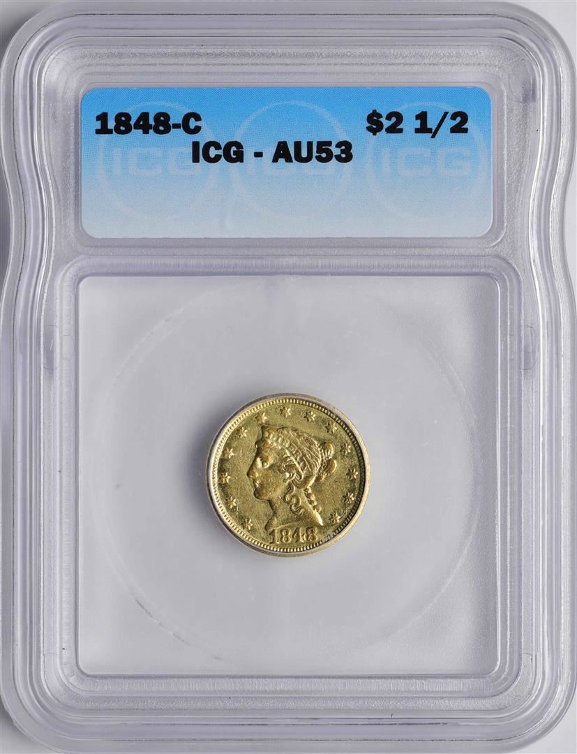 One 1848-C $2 1/2 Liberty Head Quarter Eagle Gold Coin ICG AU53. ICG Certified.