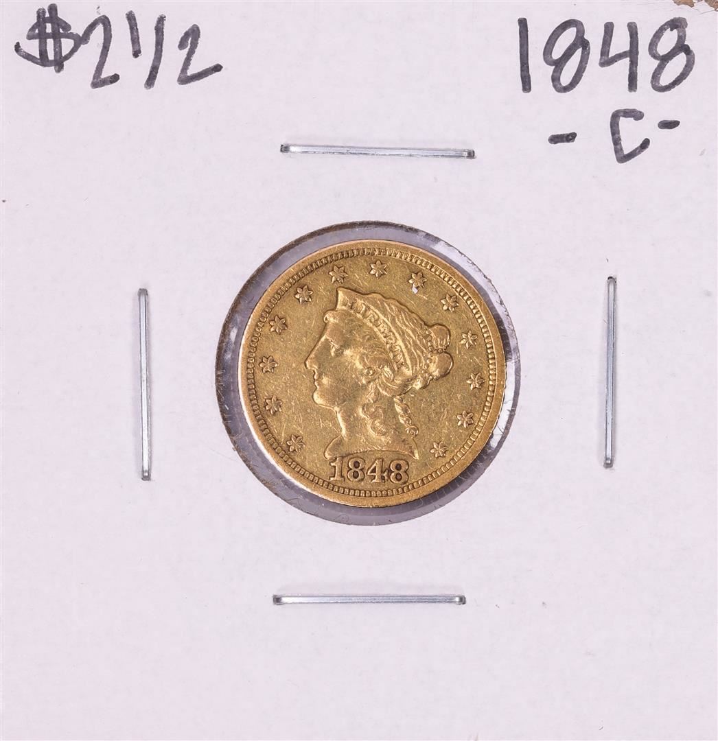 One 1848-C $2 1/2 Liberty Head Quarter Eagle Gold Coin.