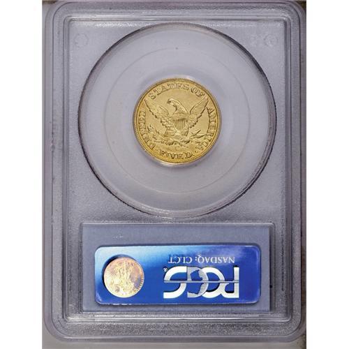 <B>1848-C<$5> AU53 PCGS.</B></I> Variety 11-E. Rich greenish-gold coloration with light abrasions on each side, probably from a brief stint in circulation. Nearly complete luster remains evident. The mintage was a substantial 64,472 coins. Walter Breen once said that this issue was prohibitively rare in AU grades, but current population figures do not support such a claim. It is a rarity in full Mint State grades, however. Population: 8 in 53, 18 finer (4/06).