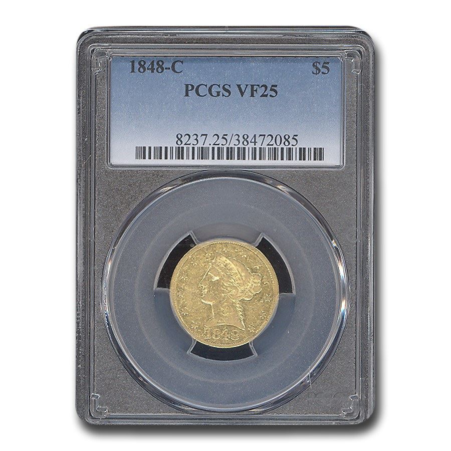 1848-C $5 Liberty Gold Half Eagle VF-25 PCGS
