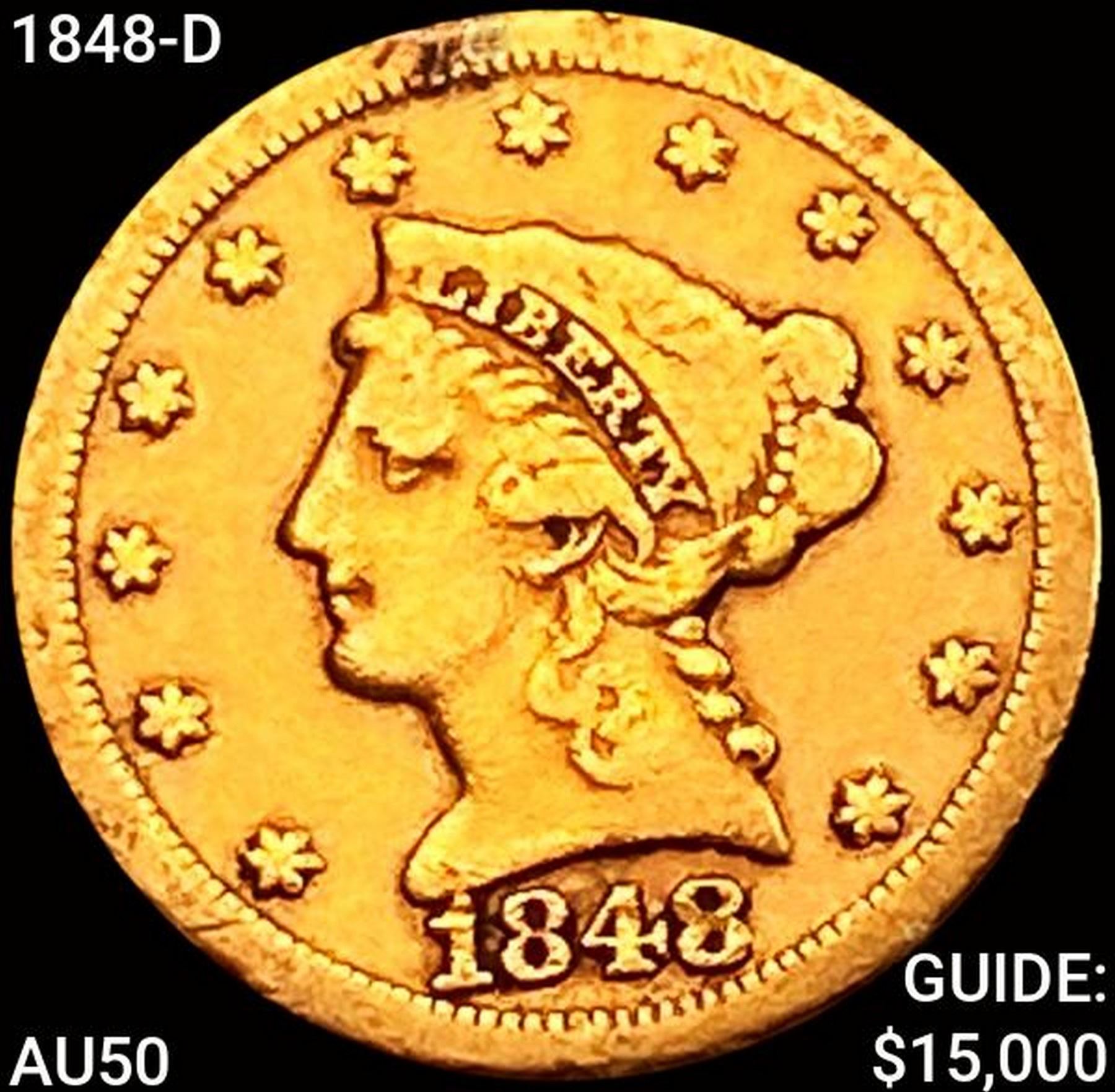 1848-D $2.50 Gold Quarter Eagle CLOSELY UNCIRCULATED