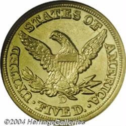 <table><tbody><tr><td><table> <TR><TD width="100%"><TABLE cellSpacing=1 cellPadding=3 width="100%" border=0><TBODY><TR><TD width="100%" bgColor=#79735c><FONT face=arial color=#ffffff size=3><B>Description</B> </FONT></TD></TR><TR><TD width="100%" bgColor=#ffffff><FONT face=arial size=2><B>1848-D $5 MS63 NGC.</B></I> Variety 18-M. Die State I. (per Doug Winter's second edition and revised attribution system). Although minted in sufficient numbers (47,465 pieces), the '48-D half eagle is scarcer overall than one might imagine and an extremely difficult issue in AU and better grades. Only a small handful exist at the Uncirculated level, of which this remarkable piece has been deemed the finest. The shimmering surfaces are boldly defined with no signs of die lapping, and the natural green-gold color contributes immeasurably to the overall eye appeal. Extensive die polish on the reverse is further evidence of this coin's early die state. Blemishes are both minimal and strategically placed, with only a few minor pinscratches in the fields and a small cluster of marks between stars 11 and 12. An exciting Dahlonega half eagle for the serious collector of Southern gold. Population: 2 in 63, 0 finer (11/03). </FONT></TD></TR></TBODY></TABLE></TD></TR></TBODY></TABLE><BR><A name=PricesRealized></A><TABLE cellSpacing=0 cellPadding=0 width="100%" bgColor=#000000 border=0><TBODY><TR><TD width="100%"><TABLE cellSpacing=1 cellPadding=3 width="100%" border=0><TBODY><TR><TD width="100%" bgColor=#79735c><A name=PR><FONT face=arial color=#ffffff size=3><B>Previous Prices from Heritage Auctions</B> </FONT></A></TD></TR><TR><TD bgColor=#f6f6ed><TABLE cellSpacing=0 cellPadding=0 width="100%" border=1><TBODY><TR><TD align=middle width="33%"><B>Date</B></TD><TD align=middle width="33%"><B>Service</B></TD><TD align=middle width="33%"><B>Price</B></TD></TR><TR bgColor=whitesmoke><TD width="33%"><B>01/07/2000</B></TD><TD width="33%">NGC</TD><TD width="33%">$24,150.00</TD></TR></TBODY></TABLE></TD></TR><TR><TD bgColor=#ffffff><FONT face=arial size=1 ?>PLEASE NOTE: All prices realized reflect the final hammer price PLUS the buyer's premium in auctions that charge a buyer's premium. Each item has a notation at the top of the listing indicating whether that lot included a buyer's premium. Example: A item that sells with a final hammer price of $100 and a 20% buyer's premium will display with a price realized of $120. All information listed is intended to be as accurate as possible, but errors are possible. Please use this guide carefully and inform us of any inaccuracies. </FONT></TD></TR></TBODY></TABLE></TD></TR></TBODY></TABLE><BR><TABLE cellSpacing=0 cellPadding=0 width="100%" bgColor=#000000 border=0><TBODY><TR><TD width="100%"><TABLE cellSpacing=1 cellPadding=3 width="100%" border=0><TBODY><TR><TD width="100%" bgColor=#79735c colSpan=6><FONT face=arial color=#ffffff size=3><B>Price Guide*</B> </FONT></TD></TR><TR bgColor=#f6f6ed><TD align=middle><B>Grade</B> </TD><TD align=middle><B>Coin World<BR>(Trends)</B> </TD><TD align=middle><B>Numismedia<BR>Retail</B> </TD><TD align=middle><B>Numismedia<BR>Wholesale</B> </TD><TD align=middle><B>Coin<BR>Universe</B> </TD><TD align=middle><B>Heritage<BR>Value Index</B> </TD></TR><TR bgColor=#ffffff><TD align=middle>62</TD><TD align=right>$25,000.00</TD><TD align=right>---</TD><TD align=right>$12,250.00</TD><TD align=right>---</TD><TD align=right>$15,162.50</TD></TR><TR style="FONT-WEIGHT: bold" bgColor=#cccfdd><TD align=middle>63</TD><TD align=right>---</TD><TD align=right>---</TD><TD align=right>$24,150.00</TD><TD align=right>---</TD><TD align=right>$17,900.00</TD></TR><TR bgColor=#ffffff><TD align=middle>64</TD><TD align=right>---</TD><TD align=right>---</TD><TD align=right>---</TD><TD align=right>---</TD><TD align=right>$37,350.00</TD></TR><TR bgColor=#ffffff><TD colSpan=6><FONT size=1>*All information listed is intended to be as accurate as possible, but errors are possible. No item may be returned or refused based on this information which is provided as a service to our customers. You should contact each pricing source directly to determine the accuracy of this information. </FONT></TD></TR></TBODY></TABLE></TD></TR></TBODY></TABLE><BR><TABLE cellSpacing=0 cellPadding=0 width="100%" bgColor=#000000 border=0><TBODY><TR><TD width="100%"><TABLE cellSpacing=1 cellPadding=3 width="100%" border=0><TBODY><TR><TD width="100%" bgColor=#79735c><FONT face=arial color=#ffffff size=3><B>Population Guide</B> </FONT></TD></TR><TR bgColor=#ffffff><TD align=middle><!-- Begin Output of Population Grid--><TABLE cellSpacing=0 cellPadding=0 width="100%" border=0><TBODY><TR><TD vAlign=center><TABLE cellSpacing=0 width="100%" border=1 cellsadding="3"><TBODY><TR><TD vAlign=center><TABLE cellSpacing=0 cellPadding=3 width="100%" border=1><TBODY><TR><TD vAlign=center align=middle bgColor=#f0f1e8 colSpan=2 <CENTER><FONT face=Arial size=2><B>PCGS Pop </B></FONT><CENTER></CENTER></TD><TD vAlign=center align=middle bgColor=#f0f1e8 colSpan=2><CENTER><FONT face=Arial size=2><B>NGC Pop</B></CENTER></FONT></TD></TR><TR><TD vAlign=center><FONT face=Arial size=2>(63)</FONT> </TD><TD vAlign=center align=right><FONT face=Arial size=2>0</FONT> </TD><TD vAlign=center><FONT face=Arial size=2>(63)</FONT> </TD><TD vAlign=center align=right><FONT face=Arial size=2>2</FONT> </TD></TR><TR><TD vAlign=center><FONT face=Arial size=2>(>63)</FONT> </TD><TD vAlign=center align=right><FONT face=Arial size=2>0</FONT> </TD><TD vAlign=center><FONT face=Arial size=2>(>63)</FONT> </TD><TD vAlign=center align=right><FONT face=Arial size=2>0</FONT> </TD></TR></TBODY></TABLE></TD></TR></TBODY></TABLE></TD></TR></TBODY></TABLE><!-- End Output of Population Grid--></TD></TR></TBODY></TABLE></TD></TR></TBODY></TABLE><BR><TABLE cellSpacing=0 cellPadding=0 width="100%" bgColor=#000000 border=0><TBODY><TR> <font color='#000000'><span style='background-color: #FFFFFF'><td bgcolor='#FFFFFE'> Important notice: Heritage usually auctions ma