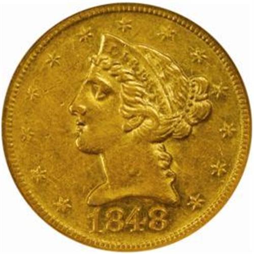 <style type="text/css"> body, td, th { font-family: Arial, Helvetica, sans-serif; font-size: 12px; color: #482424; margin: 0px; padding: 0px; } #header { background-image: url(http://www.bowersandmerena.com/ebay/images/template_v3_01.gif); clear: both; background-color: #590303; border-top-width: 2px; border-top-style: solid; border-top-color: #B38C4F;}#header #header_wrapper { height: 75px; clear: both; width: 800px; margin-right: auto; margin-left: auto; background-image: url(http://www.bowersandmerena.com/ebay/images/template_v3_03.gif); background-repeat: no-repeat; background-position: right; color: #F3EDCC;}#header #header_wrapper #header_logo { float: left; height: 75px; width: 444px; background-image: url(http://www.bowersandmerena.com/ebay/images/template_v3_02.gif); background-repeat: no-repeat; font-size: 10px; text-transform: capitalize; color: #B38C4F;}#header #header_wrapper #header_right { float: left; height: 75px; width: 356px; text-align: right;}#header #header_wrapper #header_right #headerLoginBtn { margin-bottom: 30px;}#header #header_wrapper #header_right input#txtSearch { color: #B49056; border: 1px solid #B49056; width: 175px; padding-top: 3px; padding-right: 3px; padding-bottom: 4px; padding-left: 3px;}#nav { height: 37px; background-image: url(http://www.bowersandmerena.com/ebay/images/template_v3_05.gif); clear: both;}#nav #nav_wrapper { height: 35px; width: 800px; margin-right: auto; margin-left: auto; border-left-width: 1px; border-left-style: solid; border-left-color: #B38C4F;}#nav #nav_wrapper a { padding-right: 15px; padding-left: 15px; border-right-width: 1px; border-right-style: solid; border-right-color: #B38C4F; height: 25px; padding-top: 10px; display: block; float: left; text-decoration: none; font-weight: bold; color: #5D0303;}#nav #nav_wrapper a:hover { color: #B38C4F;}#nav #nav_wrapper #search { float: right; padding-top: 7px;}#nav #nav_wrapper #search #txtSearch { font-family: Arial, Helvetica, sans-serif; font-size: 10px; text-transform: uppercase; color: #D2AE75; border: 1px solid #B38C4F; padding: 3px;}#content_bgd { background-image: url(http://www.bowersandmerena.com/ebay/images/template_v3_09.gif); background-repeat: repeat-y; background-position: center; padding-top: 15px; padding-bottom: 15px; background-color: #FBFBDB;}#content_wrapper { clear: both; height: auto; width: 800px; margin-right: auto; margin-left: auto;}.LotDetailWhite{ line-height:normal; font-size:13px; font-family: arial,helvetica,sans-serif; color: White; font-weight: bold;}.LotDetailInformation{ line-height:normal; font-size: 13px; font-family: arial,helvetica,sans-serif;}.LotDetailMessage{ line-height:normal; font-size: 13px; font-family: arial,helvetica,sans-serif; color: red;}}tr.HeaderAuctionTitle td { color: #000000; font-weight: bold; padding: 2px; background-image: url(http://www.bowersandmerena.com/ebay/images/template_v3_05.gif); background-repeat: repeat-x; border-bottom-width: 1px; border-bottom-style: solid; border-bottom-color: #B38C4F;}table.AuctionSummary a, table.AuctionSummary a:link, table.AuctionSummary a:visited { color: #0000FF; text-decoration: none;}}td.tableHeaderLeft { border-left-width: 1px; border-left-style: solid; border-left-color: #B38C4F;}td.tableHeaderRight { border-right-width: 1px; border-right-style: solid; border-right-color: #B38C4F;}td.tableCellMiddle { border-left-width: 1px; border-left-style: solid; border-left-color: #B38C4F; border-right-width: 1px; border-right-style: solid; border-right-color: #B38C4F; padding: 5px;}tr.footer td { border-top-width: 1px; border-top-style: solid; border-top-color: #B38C4F;}</style></head><body><div id="header"> <div id="header_wrapper"> <div id="header_logo"> </div> <div id="header_right"> </div> </div></div><div id="nav"> <div id="nav_wrapper"> <a href="http://www.bowersandmerena.com">Our eBayLive Auctions</a> <a href="#PaymentInfo">Payment Information</a> <a href="#ShippingInfo">Shipping Information</a> <a href="#About">About Bowers and Merena</a> </div></div><div id="content_bgd"> <div id="content_wrapper"> <table width="100%" border="0" cellpadding="5" cellspacing="0" class="AuctionSummary"> <tbody> <tr class="HeaderAuctionTitle" style="height: 25px;"> <td align="left" class="tableHeaderLeft" > </td> <td align="center" class="tableHeaderRight"> <span style="font-size: large;">Lot #1115. 1848-D Liberty Half Eagle. Winter 18-M. Die State III. AU-55 (NGC).</span> </td> </tr> <tr> <td colspan="3" class="tableCellMiddle"> One of the more underrated Dahlonega Mint Half Eagles, particularly in AU and Mint State, the 1848-D ranks sixth in high-grade rarity among the 26 Five-Dollar gold issues from this Southern branch mint. The present example is a seldom-seen Choice AU survivor of a die state that Doug Winter (2003) describes as, "...extremely rare in AU-55 or better." Otherwise green-gold color brightens to more or a yellow-gold sheen as the surfaces dip into a light. Flashes of prooflike reflectivity are also discernible in the fields at direct angles, this despite a somewhat scuffy appearance due to the presence of scattered abrasions. Well struck by the standards of both the die pair and the die state, the only areas of mentionable lack of detail are confined to the eagle's head and neck on the reverse and the opposing area on the obverse. Spindly stars along the left-obverse border are the result of overzealous die polishing in the Mint.