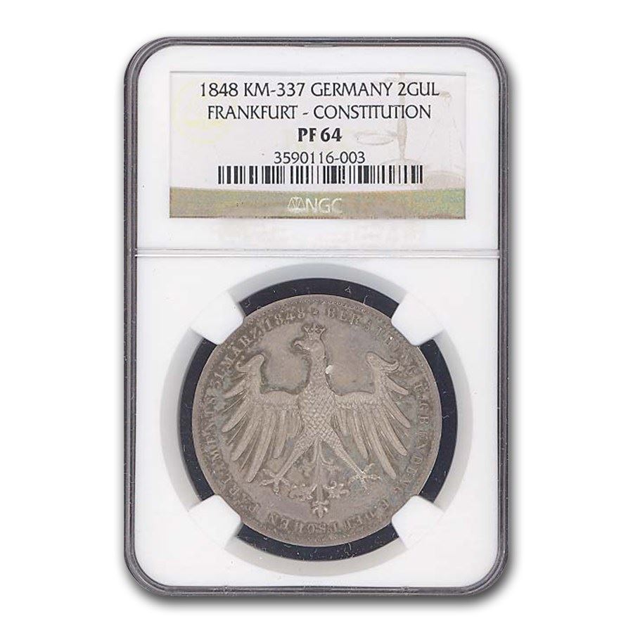 1848 Germany Frankfurt Two Gulden Constitution PF-64 NGC
