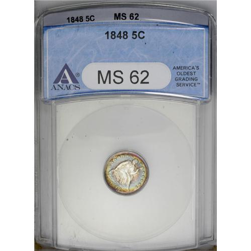 1848 H10C Medium Date MS62 ANACS, attractive lemon, oc 1848[H10C] Medium Date MS62 ANACS,