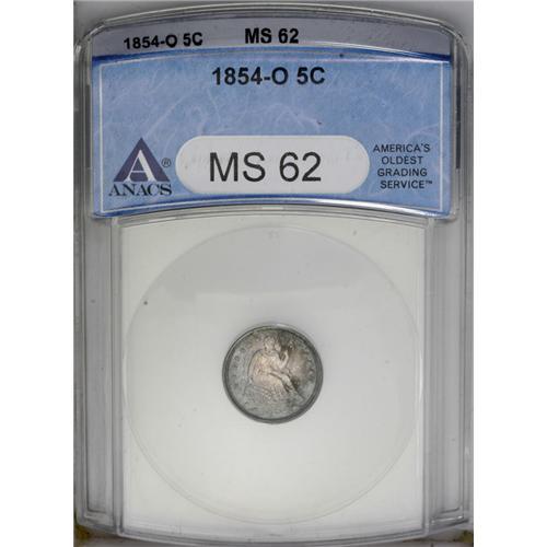 <B>1848<H10C> Medium Date MS62 ANACS,</B></I> attractive lemon, ocean-blue, and ruby patina; and an <B>1854-O Arrows MS62 ANACS,</B></I> rich apple-green toning cedes to light golden-brown centers.