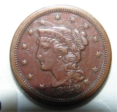 1848 U.S. LARGE CENT. XF.