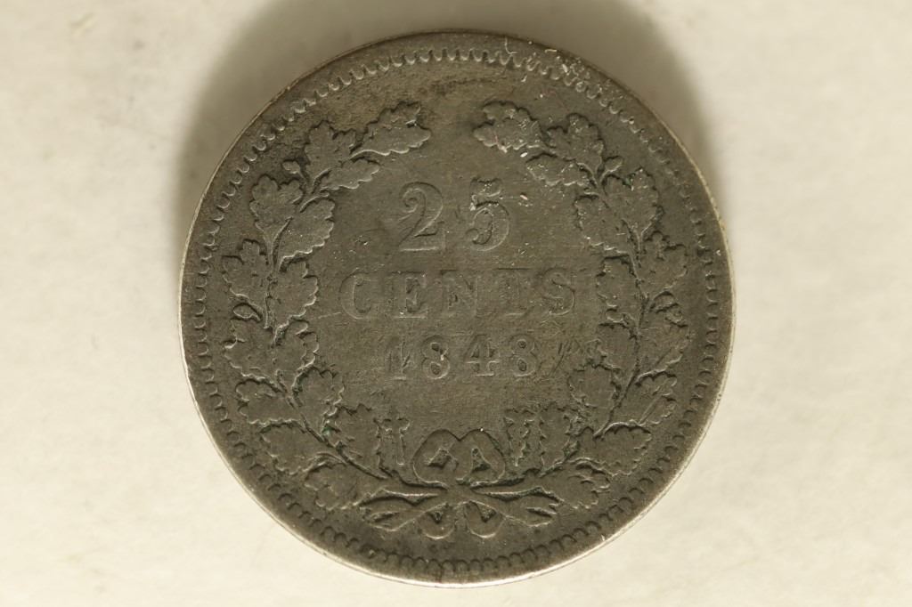 1848 NETHERLANDS SILVER 25 CENTS .0736 OZ. ASW