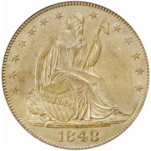 <style type="text/css"> body, td, th { font-family: Arial, Helvetica, sans-serif; font-size: 12px; color: #482424; margin: 0px; padding: 0px; } #header { background-image: url(http://www.bowersandmerena.com/ebay/images/template_v3_01.gif); clear: both; background-color: #590303; border-top-width: 2px; border-top-style: solid; border-top-color: #B38C4F;}#header #header_wrapper { height: 75px; clear: both; width: 800px; margin-right: auto; margin-left: auto; background-image: url(http://www.bowersandmerena.com/ebay/images/template_v3_03.gif); background-repeat: no-repeat; background-position: right; color: #F3EDCC;}#header #header_wrapper #header_logo { float: left; height: 75px; width: 444px; background-image: url(http://www.bowersandmerena.com/ebay/images/template_v3_02.gif); background-repeat: no-repeat; font-size: 10px; text-transform: capitalize; color: #B38C4F;}#header #header_wrapper #header_right { float: left; height: 75px; width: 356px; text-align: right;}#header #header_wrapper #header_right #headerLoginBtn { margin-bottom: 30px;}#header #header_wrapper #header_right input#txtSearch { color: #B49056; border: 1px solid #B49056; width: 175px; padding-top: 3px; padding-right: 3px; padding-bottom: 4px; padding-left: 3px;}#nav { height: 37px; background-image: url(http://www.bowersandmerena.com/ebay/images/template_v3_05.gif); clear: both;}#nav #nav_wrapper { height: 35px; width: 800px; margin-right: auto; margin-left: auto; border-left-width: 1px; border-left-style: solid; border-left-color: #B38C4F;}#nav #nav_wrapper a { padding-right: 15px; padding-left: 15px; border-right-width: 1px; border-right-style: solid; border-right-color: #B38C4F; height: 25px; padding-top: 10px; display: block; float: left; text-decoration: none; font-weight: bold; color: #5D0303;}#nav #nav_wrapper a:hover { color: #B38C4F;}#nav #nav_wrapper #search { float: right; padding-top: 7px;}#nav #nav_wrapper #search #txtSearch { font-family: Arial, Helvetica, sans-serif; font-size: 10px; text-transform: uppercase; color: #D2AE75; border: 1px solid #B38C4F; padding: 3px;}#content_bgd { background-image: url(http://www.bowersandmerena.com/ebay/images/template_v3_09.gif); background-repeat: repeat-y; background-position: center; padding-top: 15px; padding-bottom: 15px; background-color: #FBFBDB;}#content_wrapper { clear: both; height: auto; width: 800px; margin-right: auto; margin-left: auto;}.LotDetailWhite{ line-height:normal; font-size:13px; font-family: arial,helvetica,sans-serif; color: White; font-weight: bold;}.LotDetailInformation{ line-height:normal; font-size: 13px; font-family: arial,helvetica,sans-serif;}.LotDetailMessage{ line-height:normal; font-size: 13px; font-family: arial,helvetica,sans-serif; color: red;}}tr.HeaderAuctionTitle td { color: #000000; font-weight: bold; padding: 2px; background-image: url(http://www.bowersandmerena.com/ebay/images/template_v3_05.gif); background-repeat: repeat-x; border-bottom-width: 1px; border-bottom-style: solid; border-bottom-color: #B38C4F;}table.AuctionSummary a, table.AuctionSummary a:link, table.AuctionSummary a:visited { color: #0000FF; text-decoration: none;}}td.tableHeaderLeft { border-left-width: 1px; border-left-style: solid; border-left-color: #B38C4F;}td.tableHeaderRight { border-right-width: 1px; border-right-style: solid; border-right-color: #B38C4F;}td.tableCellMiddle { border-left-width: 1px; border-left-style: solid; border-left-color: #B38C4F; border-right-width: 1px; border-right-style: solid; border-right-color: #B38C4F; padding: 5px;}tr.footer td { border-top-width: 1px; border-top-style: solid; border-top-color: #B38C4F;}</style></head><body><div id="header"> <div id="header_wrapper"> <div id="header_logo"> </div> <div id="header_right"> </div> </div></div><div id="nav"> <div id="nav_wrapper"> <a href="http://www.bowersandmerena.com">Our eBayLive Auctions</a> <a href="#PaymentInfo">Payment Information</a> <a href="#ShippingInfo">Shipping Information</a> <a href="#About">About Bowers and Merena</a> </div></div><div id="content_bgd"> <div id="content_wrapper"> <table width="100%" border="0" cellpadding="5" cellspacing="0" class="AuctionSummary"> <tbody> <tr class="HeaderAuctionTitle" style="height: 25px;"> <td align="left" class="tableHeaderLeft" > </td> <td align="center" class="tableHeaderRight"> <span style="font-size: large;">Lot #633. 1848-O Seated Liberty Half Dollar. MS-63 (PCGS).</span> </td> </tr> <tr> <td colspan="3" class="tableCellMiddle"> Even "old-silver" patina to both sides, the surfaces free of outwardly distracting abrasions. This coin is sharply struck--an attribute not always seen in O-mint coinage--and the surfaces have been uncommonly well preserved for an example of this issue. For while the 1848-O is a plentiful No Motto Seated Half in circulated grades, Mint State coins merit a Rarity-6- ranking from Randy Wiley and Bill Bugert in the 1993 book <em>The Complete Guide to Liberty Seated Half Dollars.</em>