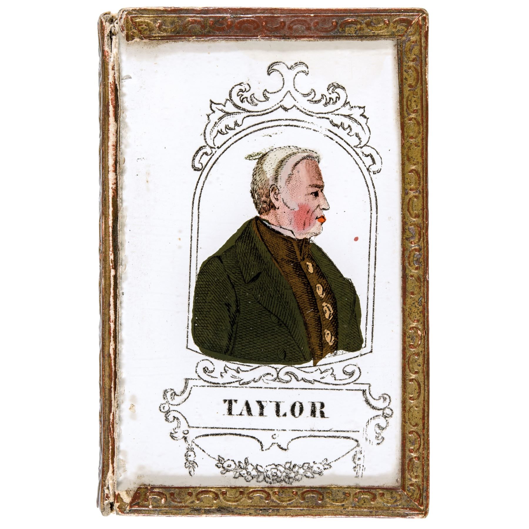 1848 Zachary Taylor Presidential Campaign, Hand-Colored “Forget me Not” Patch Box with central Portrait of Zachary Taylor, Choice Very Fine.