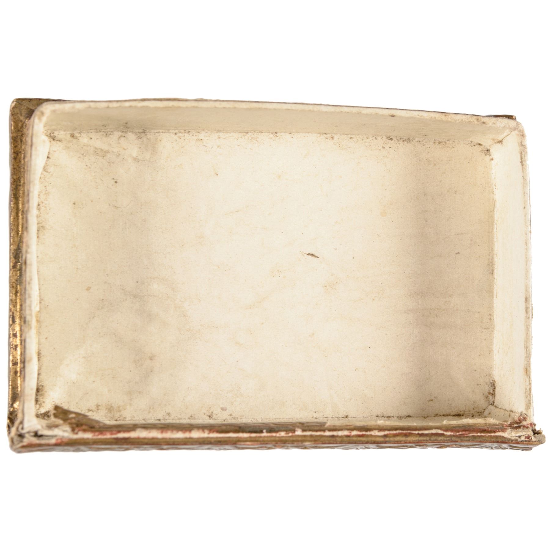 The United States presidential election of 1848 was the 16th quadrennial Presidential election, held on Tuesday, November 7, 1848. In the aftermath of the Mexican–American War, General Zachary Taylor of the Whig Party defeated Senator Lewis Cass of the Democratic Party. This is an original 1848 Zachary Taylor Presidential Campaign item that measures 1.75” x 2.75” x .5”. The decorative Hand-Colored Box has the appearance of a book, with gilt pages, when viewed from the side. Inside a mirror is mounted to the top lid. The outer back side displays a heart and reads, “Forget me Not” in blue. The gold paper edging has worn so that the lid is detached and the corners are slightly worn. Overall, a boldly Printed and colored highly decorative Presidential Campaign Box that is excellent for display.