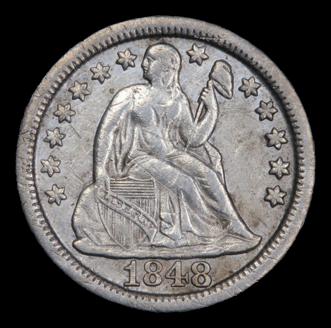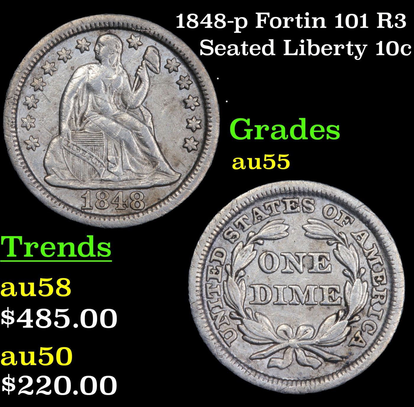 1848-p Fortin 101 R3 Seated Liberty Dime 10c Grades Choice AU.