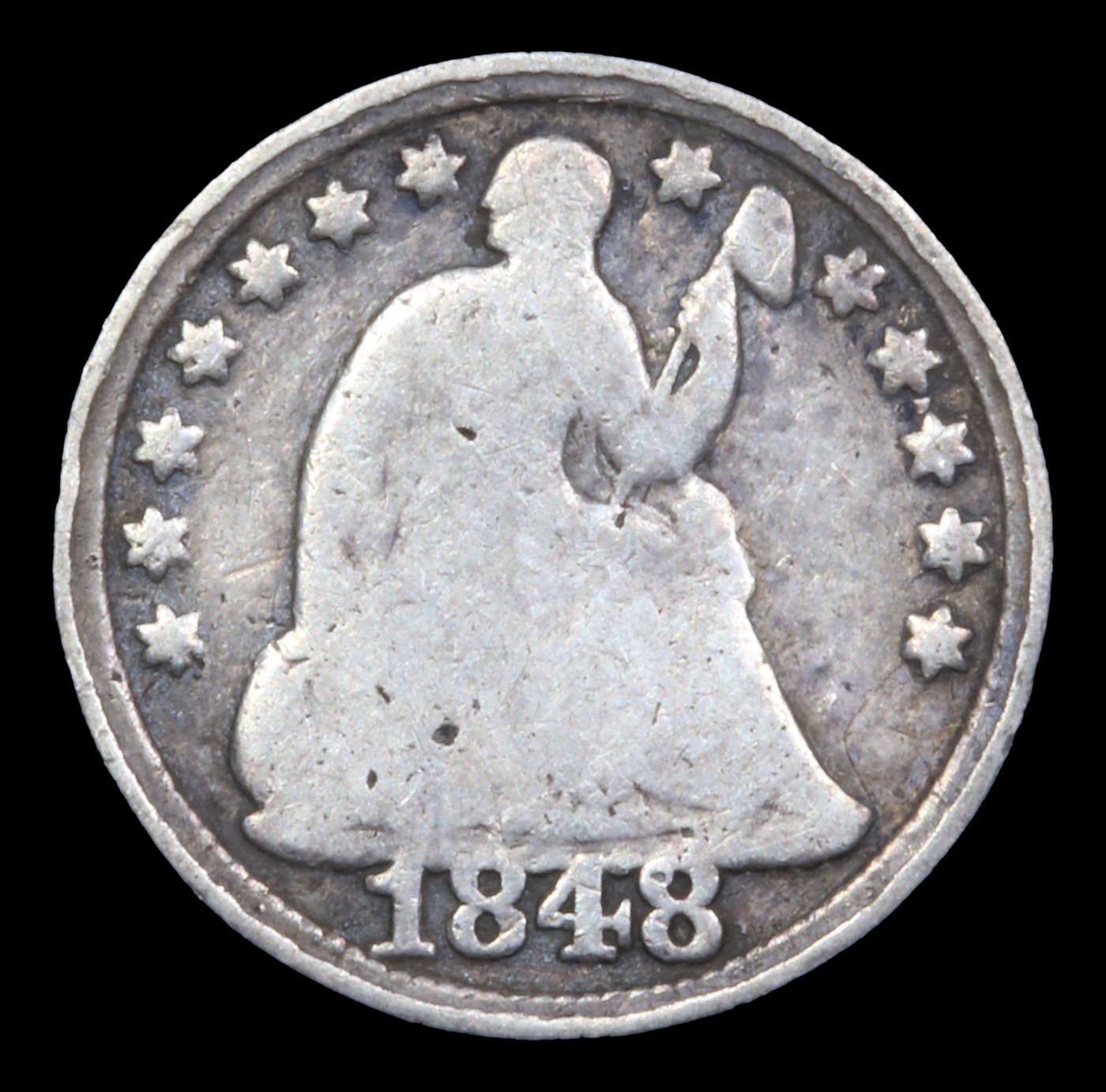 1848-p Seated Liberty Half Dime 1/2 10c Grades f, fine